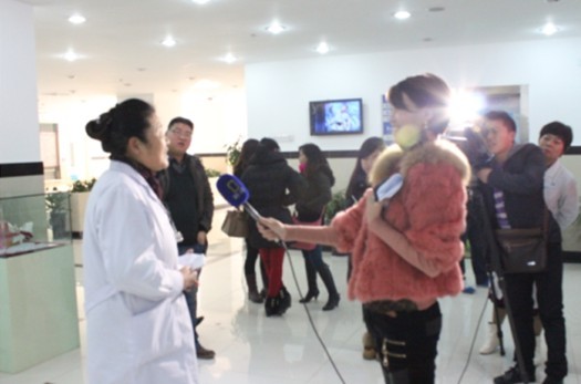 记者在对西安新城中大耳鼻喉医院医生进行采访