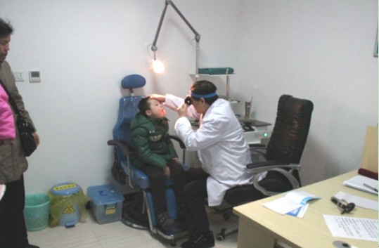 孩子们是由义工爸爸妈妈带来的,护士人员耐心地维持现场秩序,并安排两个孩子为一小组,依次进行身体检查。这些孩子都不同程度地患有各种疾病,以听觉残疾者居多。医生为他们做了相关检查,其中有一个5岁的孩子特别懂事,他患有轻度的耳聋,席主任为他做检查的时候他非常配合,经检查孩子的耳内存有耵聍需取出来,问他怕不怕,他摇摇头。其实还有很多像这样的孩子,他们需要更多的关爱和照顾。