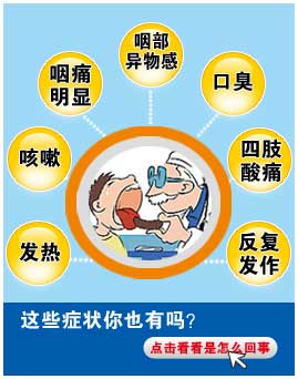 慢性咽炎的危害五:有些病人表现为咽部异物感,常作吭喀和吞咽动作,希望能将异物排除,而这些无效的清嗓动作只能加重原有的不适。于是病人怀疑自己咽部、喉咙或食管里长了肿瘤,造成很重的精神负担和压抑感。还有的人由于咽部粘膜增厚,影响呼吸的通畅因而睡眠打鼾。炎性分泌物及细菌停留,可发生口臭,不仅影响别人,患者自己也十分苦恼。