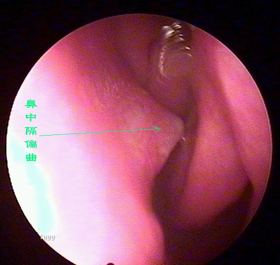 鼻中隔偏曲进行鼻内检查以判断鼻中隔偏曲的类型和程度,注意鉴别鼻中隔粘膜肥厚和是否同时存在鼻内其它疾病,如原发病变—肿瘤、异物或继发病变—鼻窦炎、息肉等。 另一罕见者为鼻中隔梅毒瘤,其质地中亦较硬,但该处粘膜明显充血。
