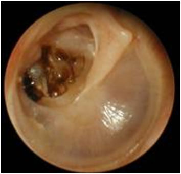 患先天性胆脂瘤的患者,鼓膜正常,因此早期往往很难被发现,直到出现听力下降时才会到医院就诊,如果耳内镜检查发现鼓膜后有白色的团块影则基本可以确诊(图1)。