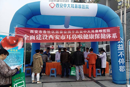 以西安新城中大耳鼻喉医院为代表的西安市多家医疗机构的100多名医务人员走上街头,为上千名市民进行健康查体和疾病宣传。