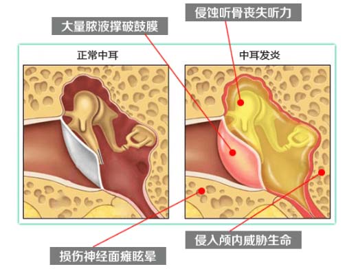 【危害】中耳反复流脓可致听力下降严重阻碍事业发展