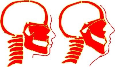 观察左右图下巴骨形状的不同,图左呈90度,而图右角度更大
